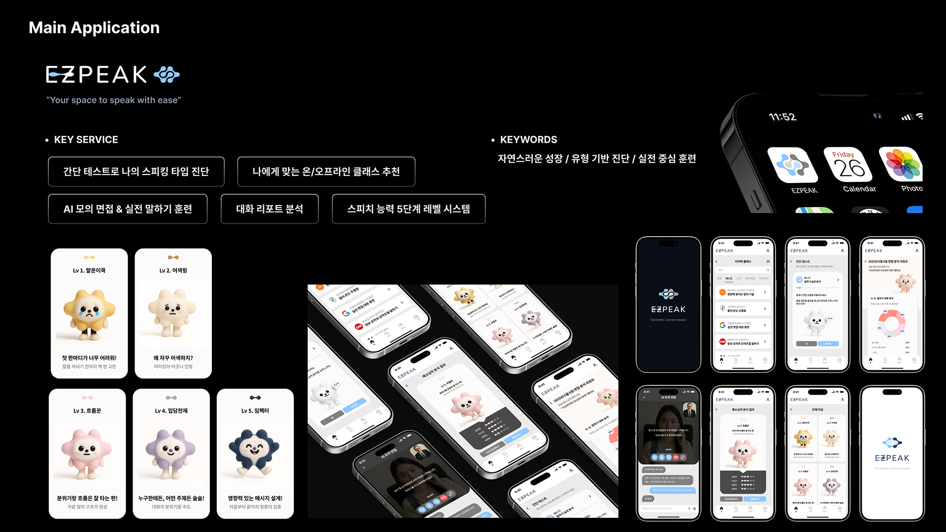 "EZPEAK은 사람들과 자연스럽게 연결되는 말하기를 돕는 앱입니다. AI가 사용자의 말습관과 대화 스타일을 분석해 진짜 나다운 말하기를 찾을 수 있도록 도와주고, 사람들과의 관계에서 더 편안하고 자신감 있게 대화할 수 있도록 스피치 진단 – 훈련 – 피드백 – 성장의 전 과정을 지원합니다. 말하는 나를 더 잘 이해하고 표현하는 경험. 그게 EZPEAK이 추구하는 연결입니다."