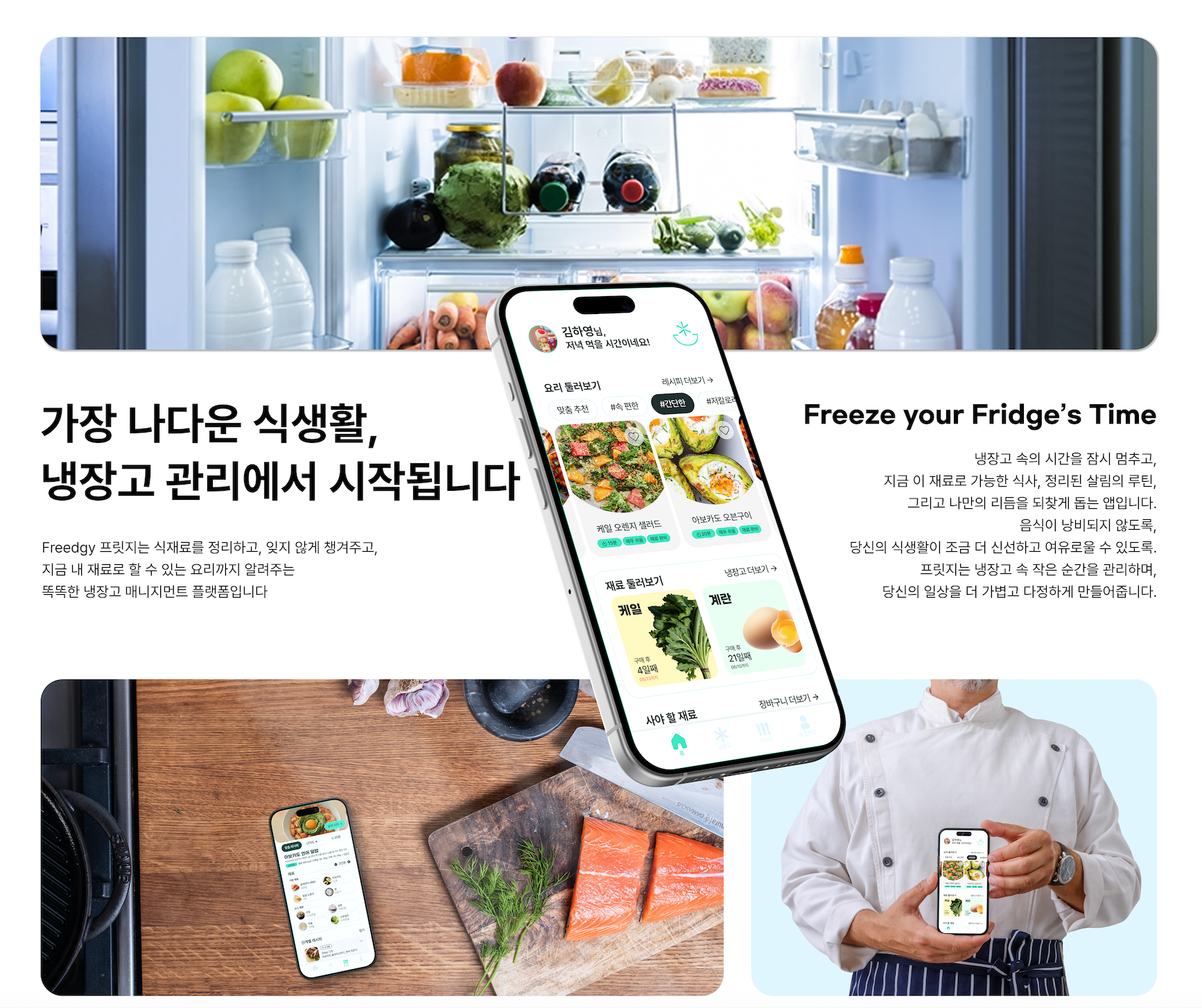 프릿지는 식재료를 정리하고, 잊지 않게 챙겨주고,