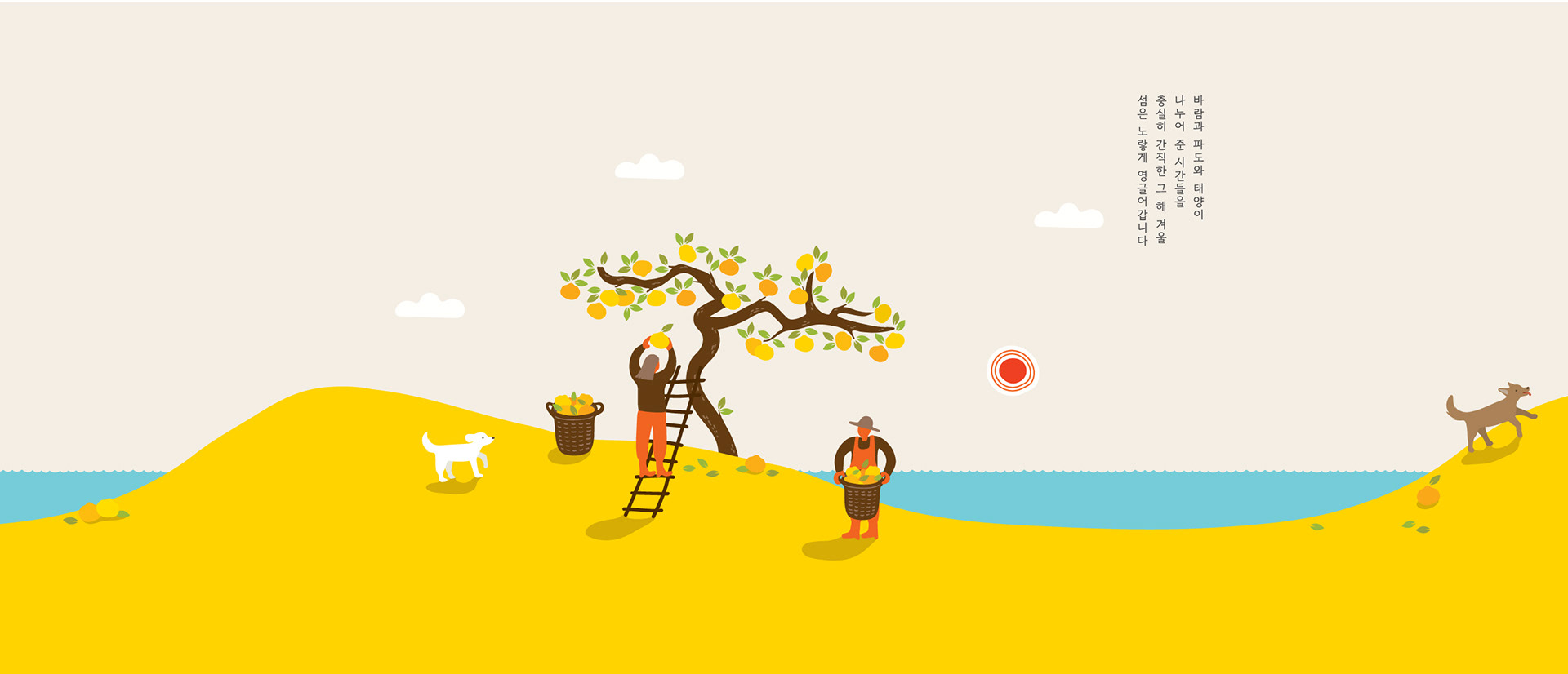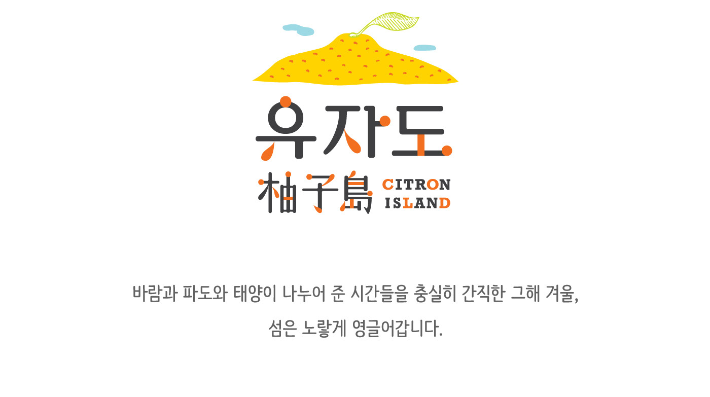 The brand logo delivers an inspiration of turning yellow Gogeumdo island with ripe yellow citron, in the winter cherishing the time spent with the sun, wind, and waves. The logo design also brings the farmer’s dream to grow ‘citron we can pick and eat with the skins on.’