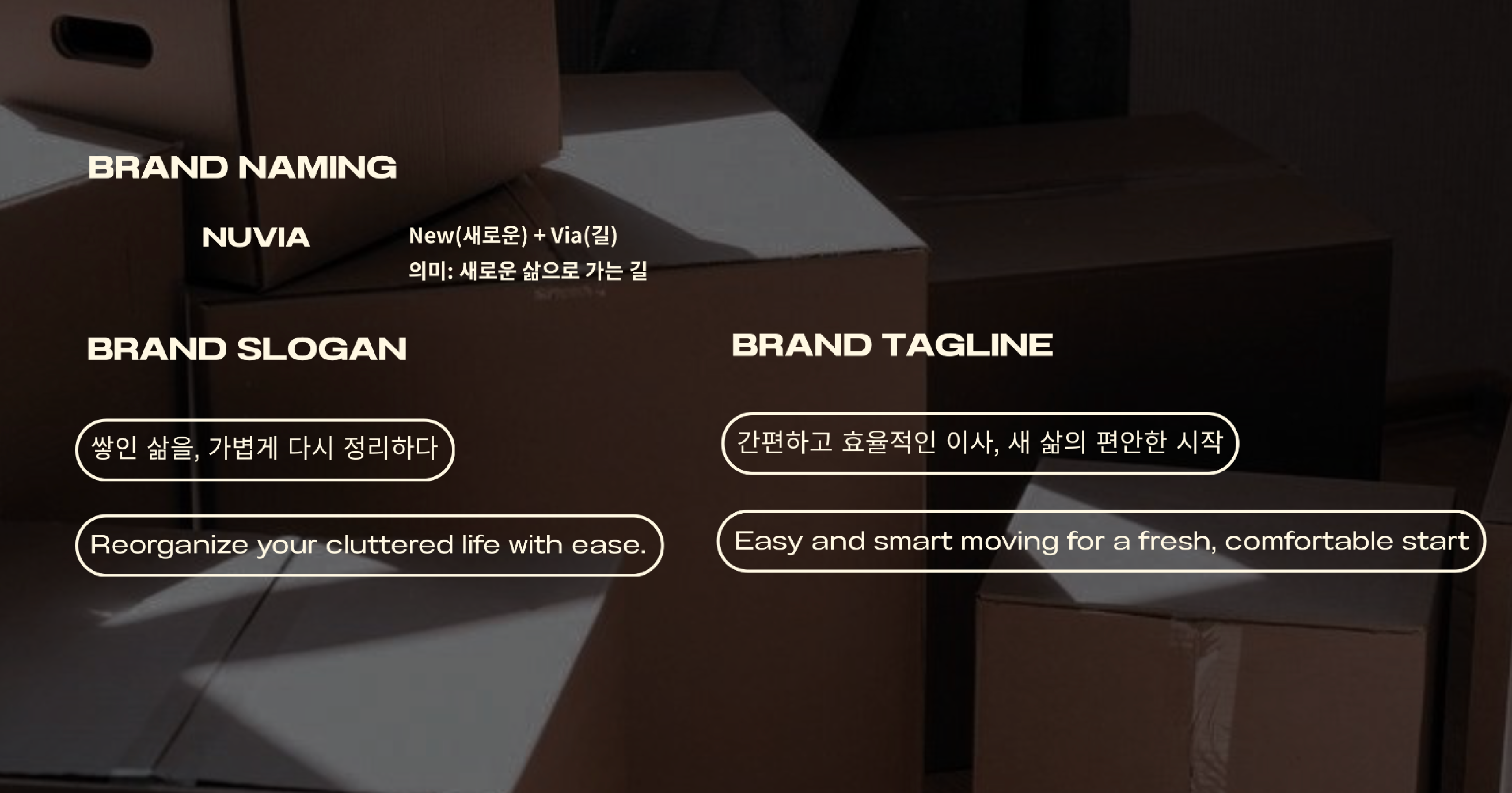 "NUVIA는 ‘새로운 길’을 뜻하며, 누구나 쉽게 새로운 삶을 시작할 수 있도록 돕는 스마트 이사 브랜드입니다.