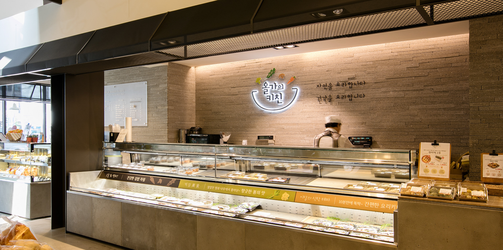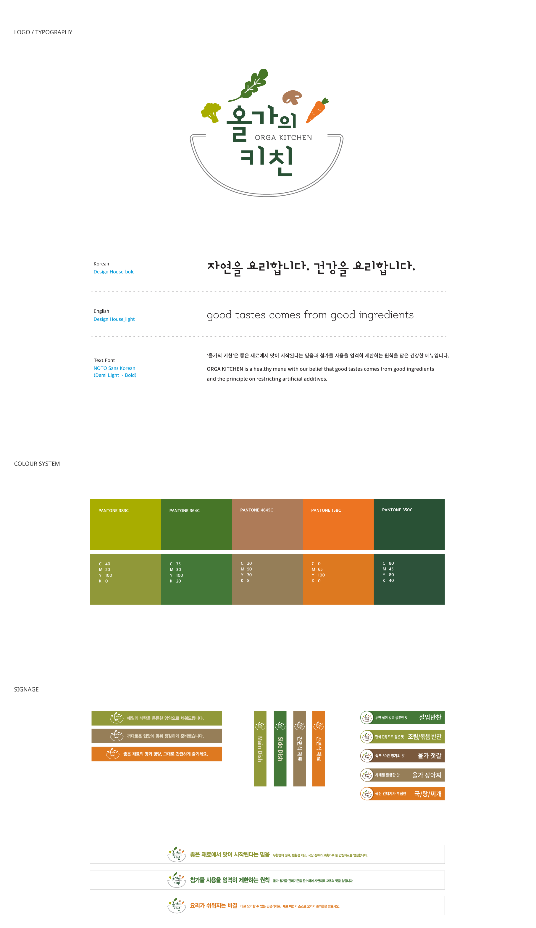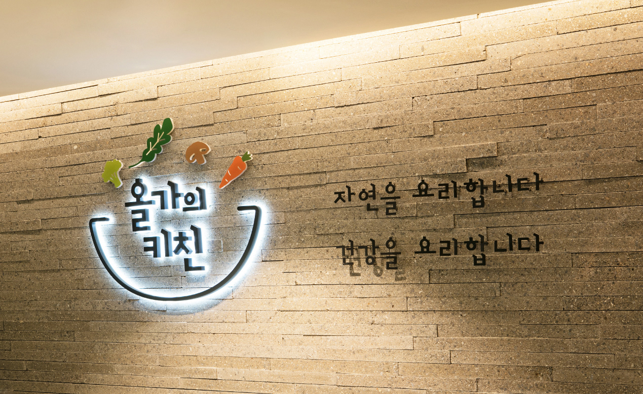 For this, action seoul developed the lingual and visual brand identity lingual and selling space VMD. The symbol was inspired by the moment where healthy ingredients are cooked in a pot. The VMD of “Orga's Kitchen”, the instant cooking home-meal menu and “Orga Bakery & Café” were also covered by action seoul.