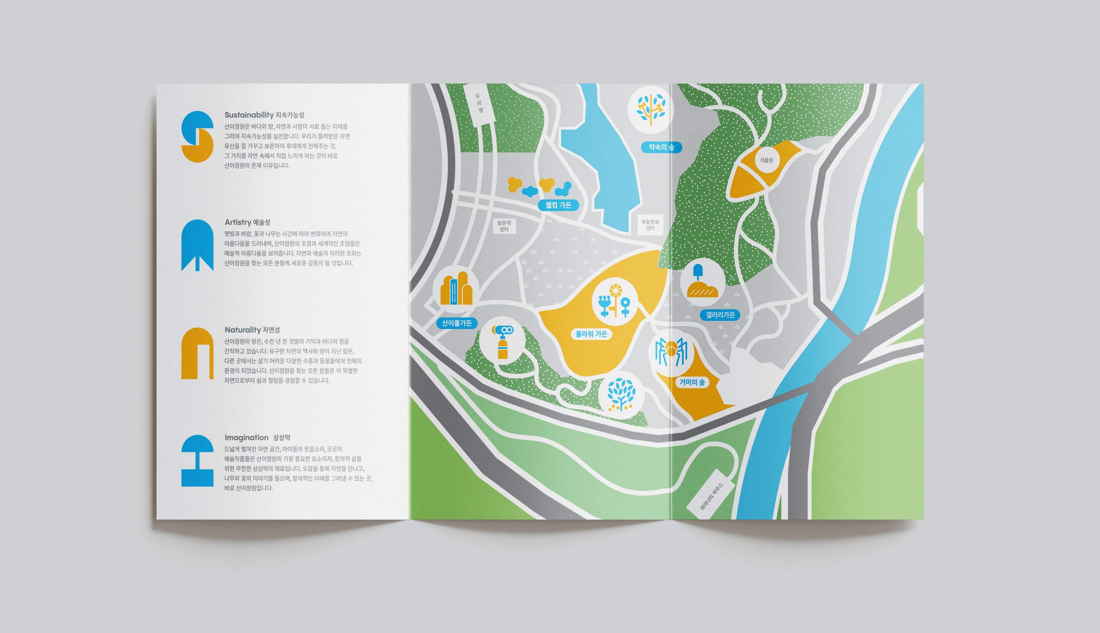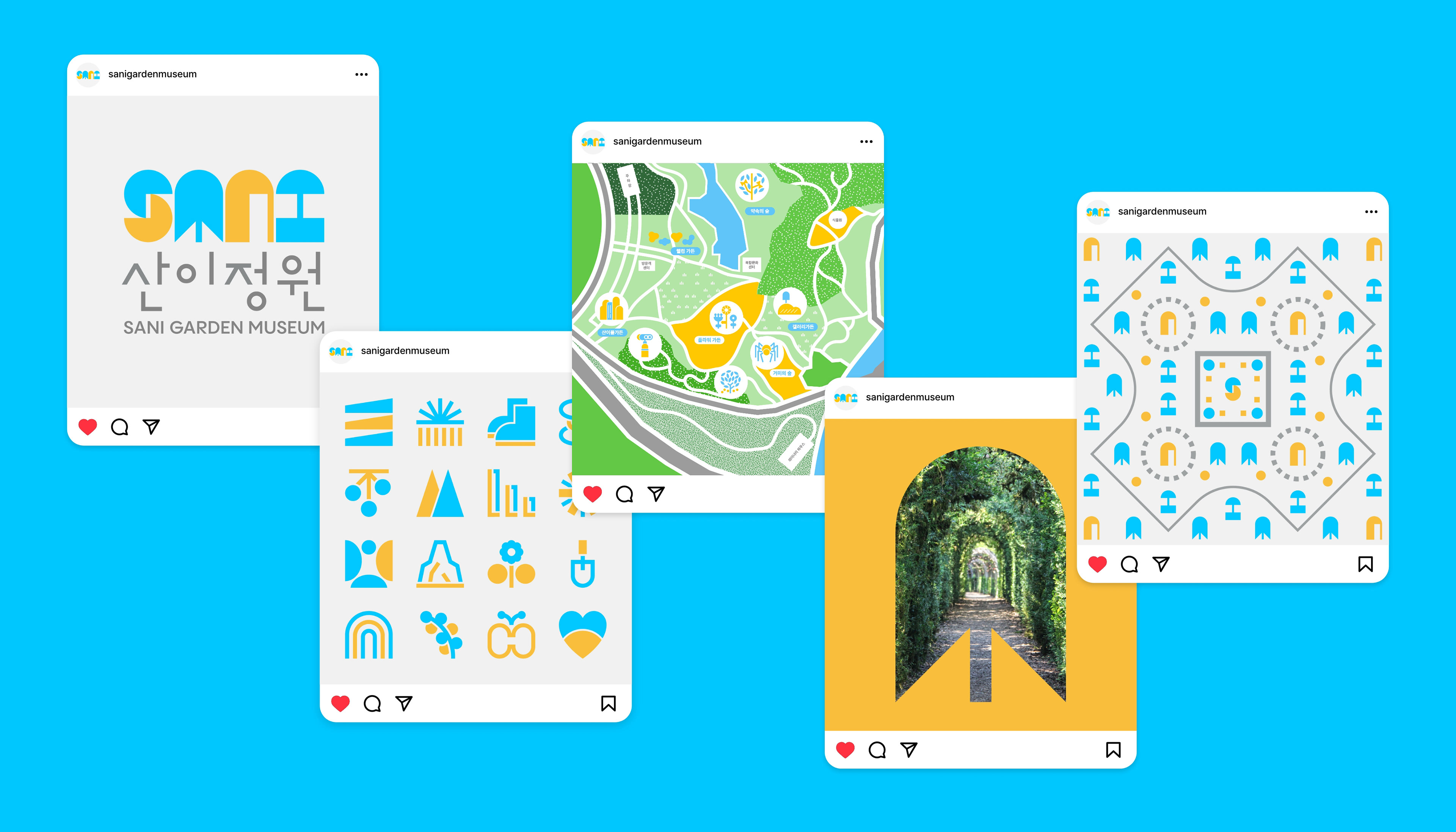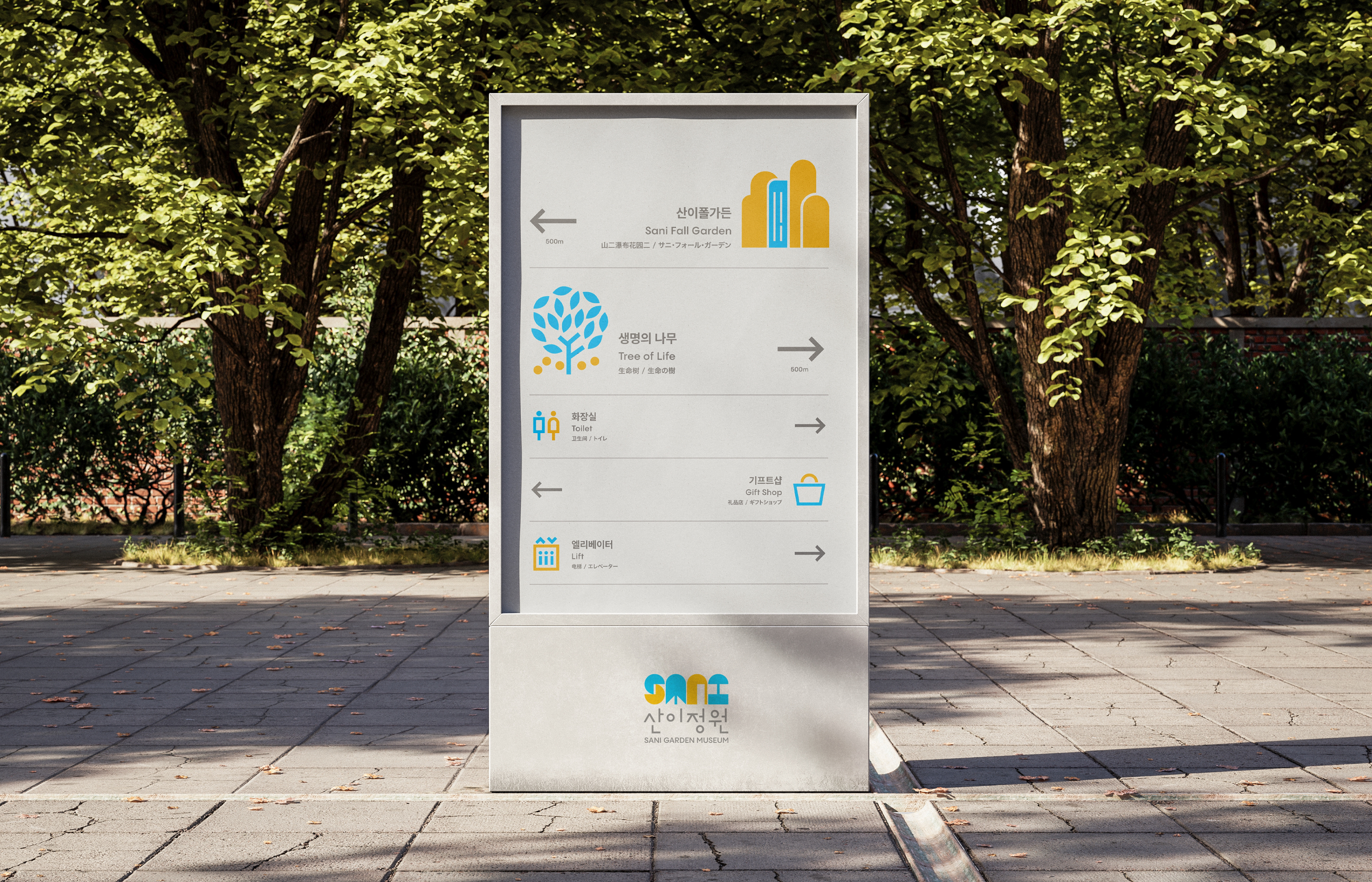 Front Kit performed the integrated branding for Sani Garden, the largest botanical garden located in Solar City, Haenam, Jeollanam-do. The theme of the garden is the harmony of people, art, and nature shaped over time. Based on this theme, Front Kit developed the brand story, logo, key visuals, characters, illustrations, and others. The logo, which visually represents "SANI," was simplified to symbolize the garden's various natural and artificial elements, and it was applied to graphic applications and diverse design variations. These powerful visuals and the use of vibrant, positive colors enhanced visibility across online and offline platforms, laying the foundation for global brand competitiveness.