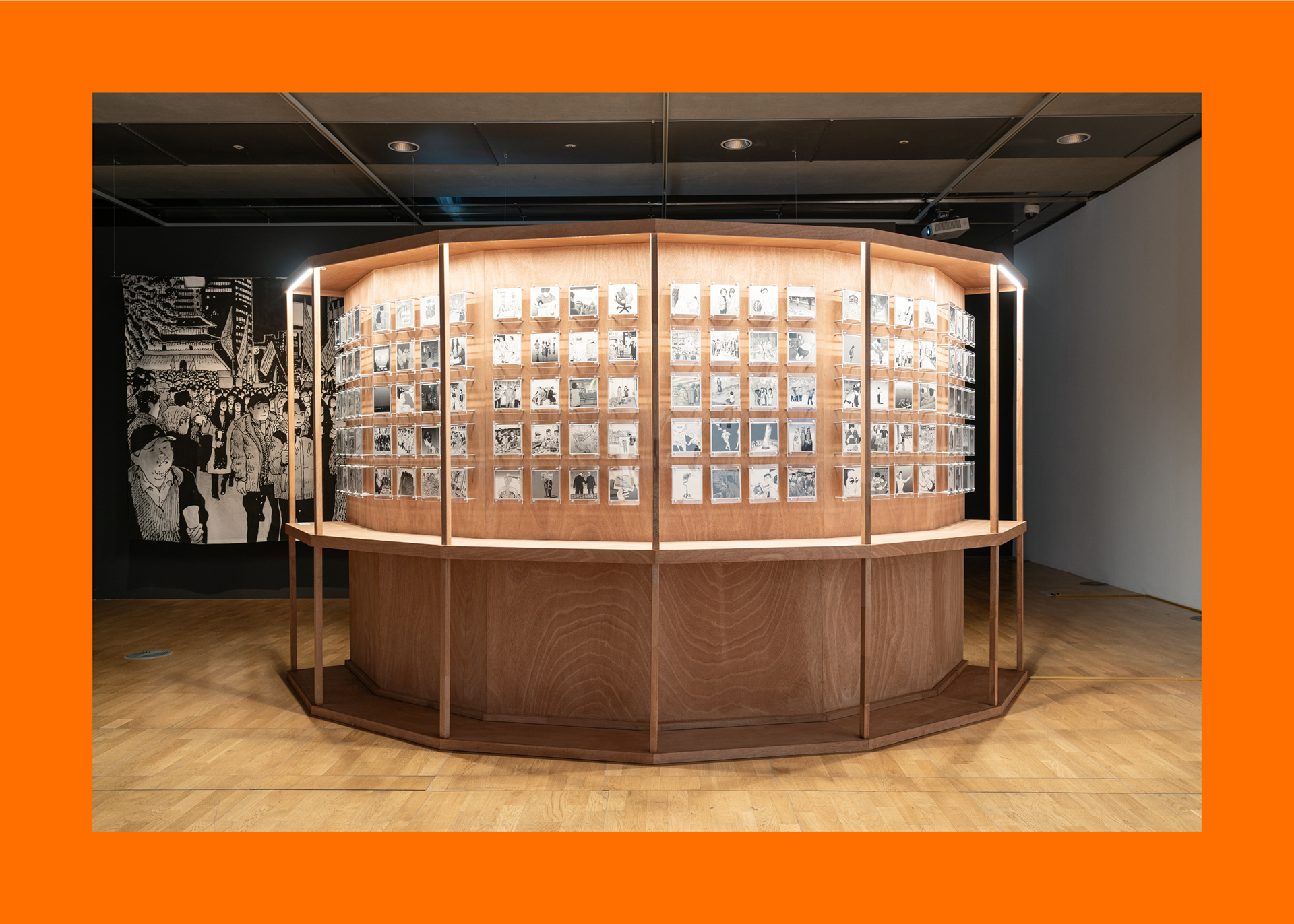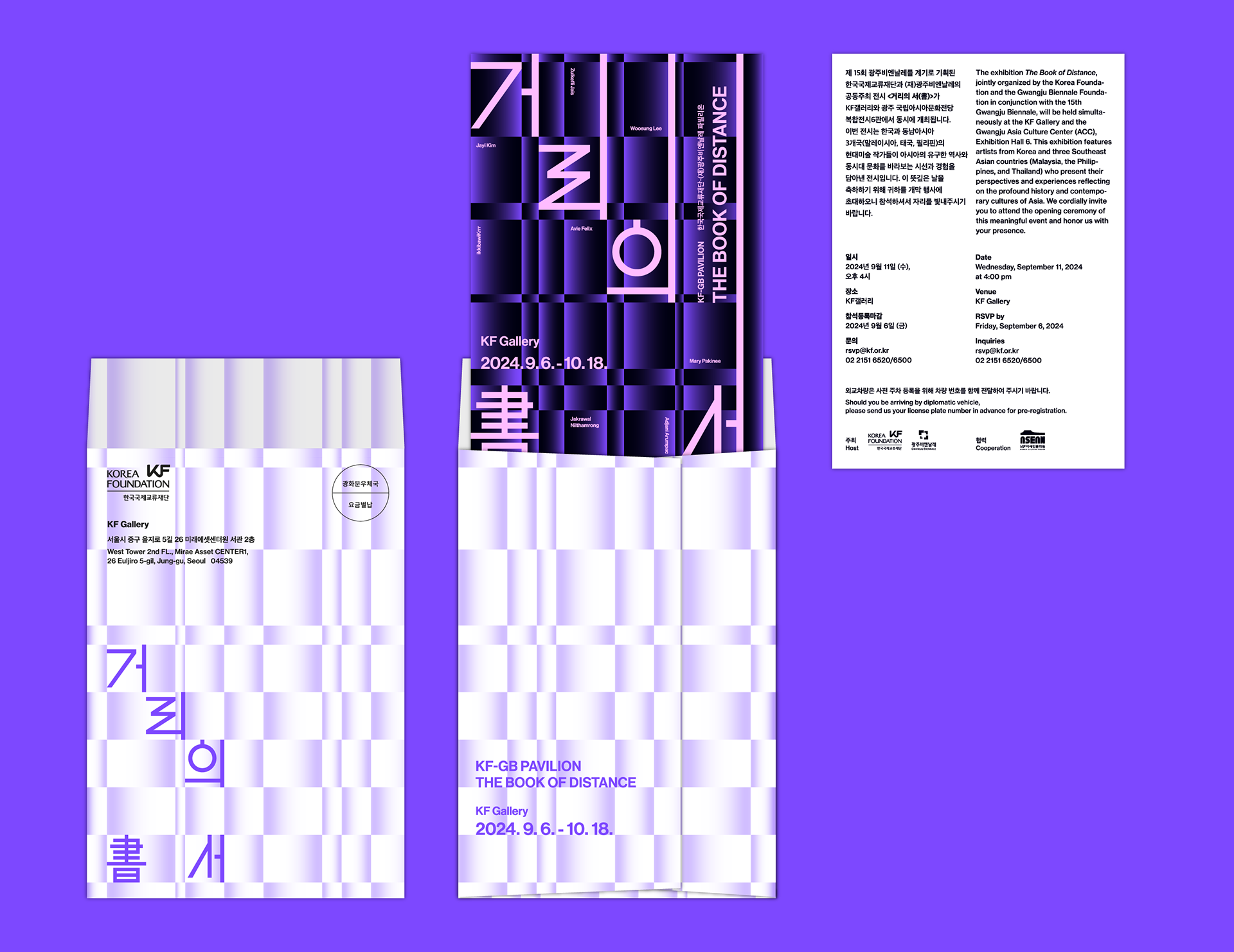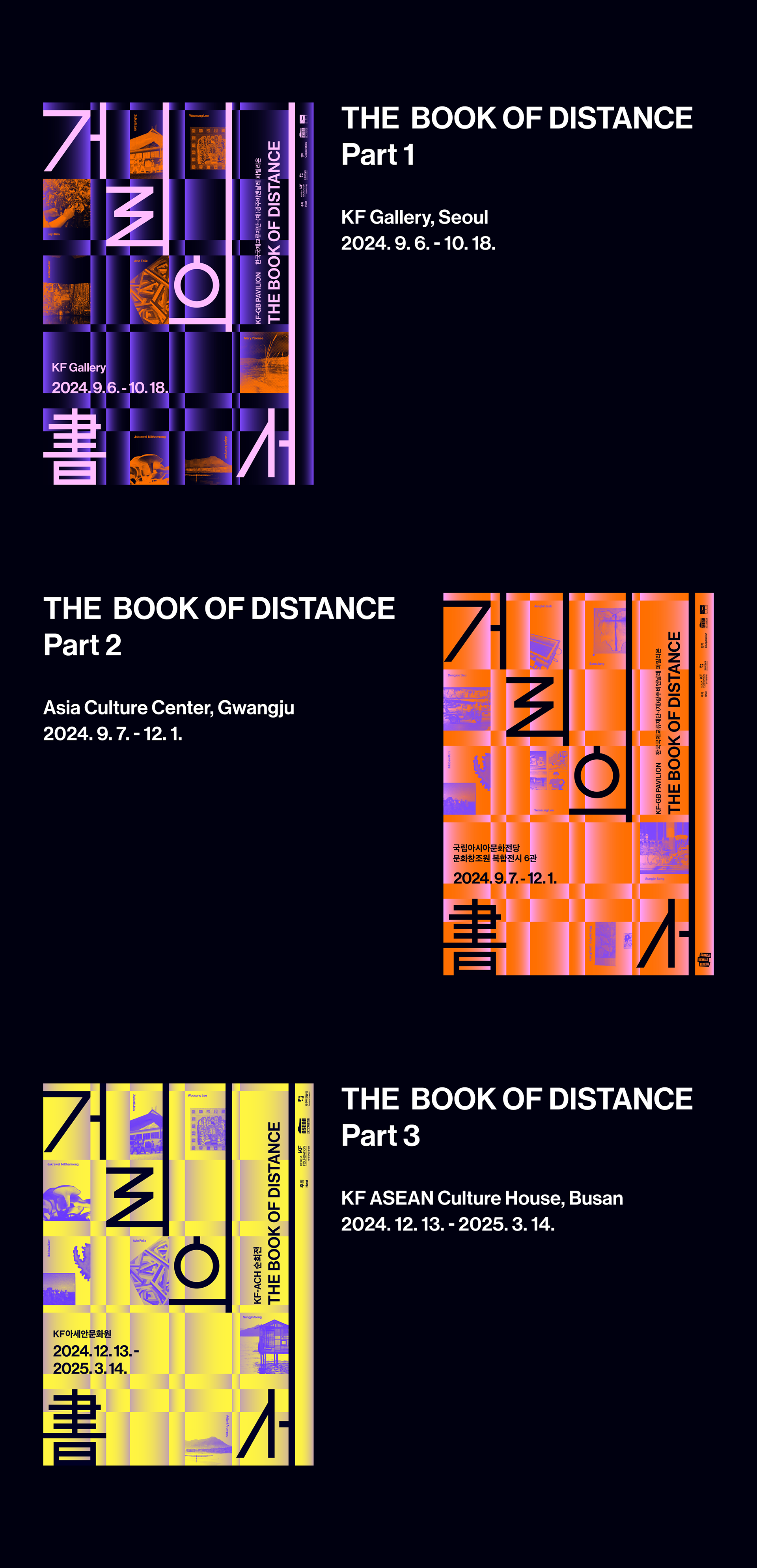 To embody the exhibition’s theme, Front Kit conceptualized a design that connects the experiences of artists existing in different times and spaces, allowing their artistic worlds to converge and expand in meaning. A neatly arranged grid was chosen as the key visual, serving as both a baseline for the exhibition title and a structural element that highlights each artwork.